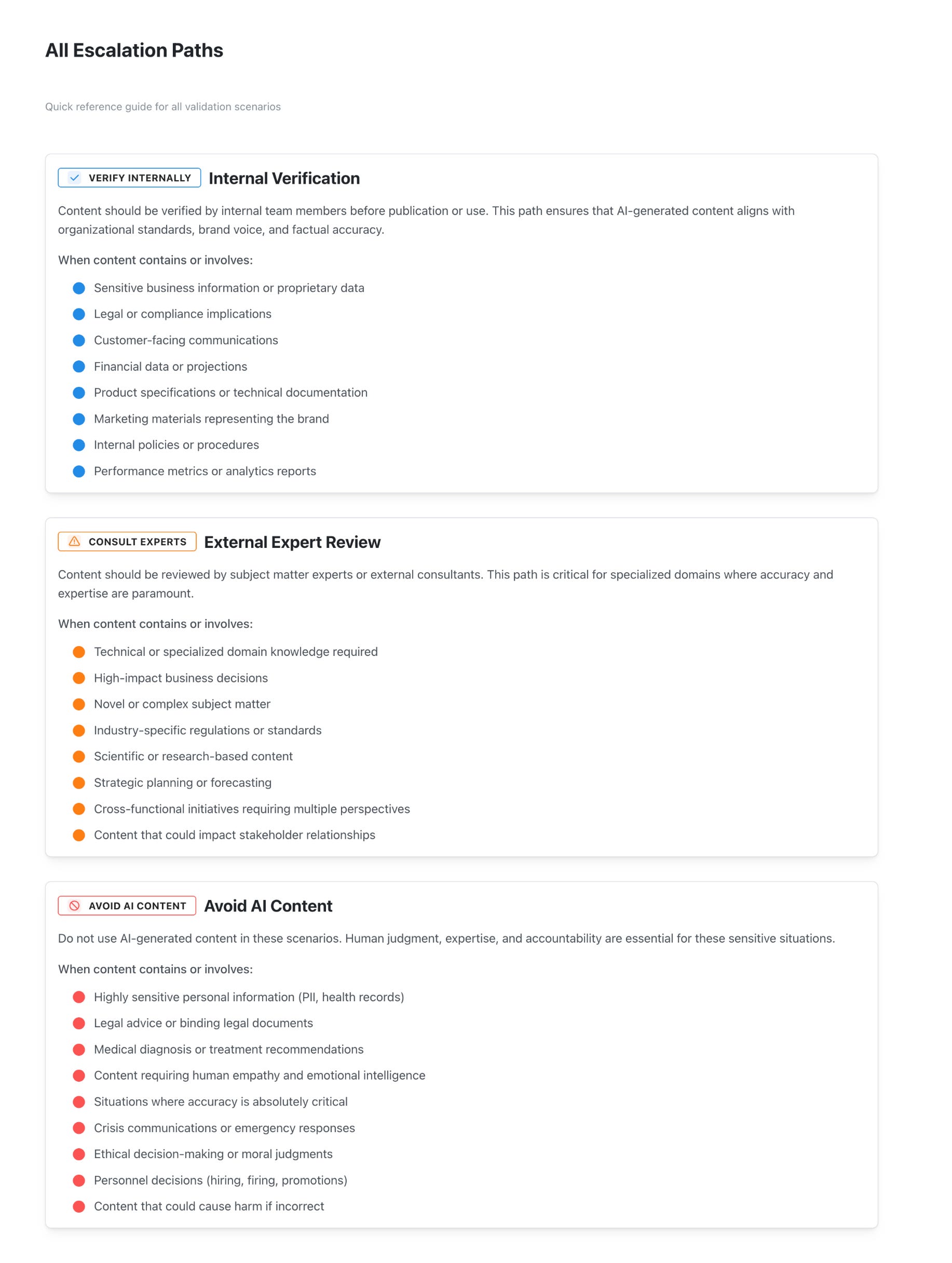 Solution: Always verify supporting evidence as rigorously as contradictory evidence. Assign someone to play “devil’s advocate” and challenge AI-generated claims. Create a policy requiring extra scrutiny for information that perfectly aligns with your position.
